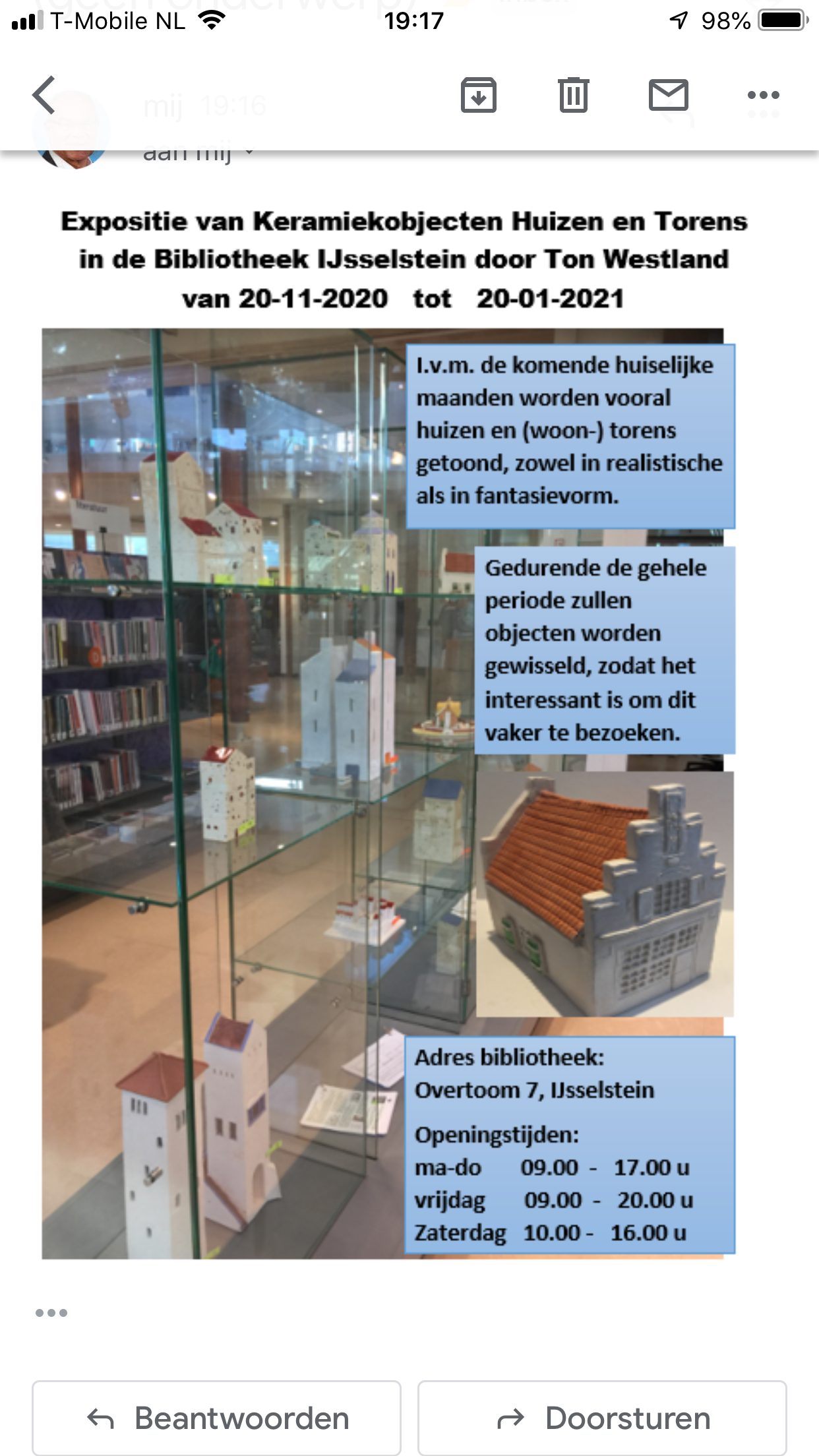 Onderstaande foto’s staan allemaal door elkaar. Als je klikt op een van de onderwerpen (tekst huizen, groepen huizen, enz.) zie je de objecten per categorie. Als je daarna op die foto’s klikt, krijg je daarover uitgebreider informatie. Categorieën: Selecteer een categorie * HUIZEN * GROEPEN HUIZEN, DORPEN, e.d. * (WOON-)TORENS, E.D. * DOOSJES EN STAPELDOOSJES * BLOEMEN, FRUIT, E.D. * DIEREN * HUIZEN * GROEPEN HUIZEN, DORPEN, e.d. * (WOON-)TORENS, E.D. * DOOSJES EN STAPELDOOSJES * BLOEMEN, FRUIT, E.D. * DIEREN Discusvis geel/oranje/rood € 55,00 Discusvis rood/wit € 39,00 Rode koraalbaars € 55,00 € 0,00 € 0,00 € 0,00 € 0,00 5 Clownsvisjes € 43,00 5 clownsvisjes II € 43,00 € 0,00 € 0,00 € 0,00 Grote bonte specht € 27,50 Grote bonte specht € 27,50 Een goede vangst € 37,50 Heerlijke citroenen € 4,75 Kruik, fles, vaas in één. € 37,50 Gedeeltelijke-cilinder-kruik € 20,00 Kruikje, cilinder met platte onderzijde € 30,00 Vakantiehuis Spanje (in opdracht) € 0,00 Specht (grote bonte specht) (VERKOCHT) € 27,50 Kersentweeling € 45,00 Waterwoningen met vuurtoren € 125,00 Brandweerhuisje IJsselstein. vanaf € 35,00 Stapelbox 9,5 x 9,5x20 cm, 4 doosjes + deksel € 55,00 IJsvogel 1 € 22,50 Doos "sunrise" € 45,00 Woontoren VIII € 90,00 Paarse klaprozen ......? Bestaan die? € 5,00 IJsvogel 2 (verkocht) € 22,50 Margrieten € 4,00 Klaprozen 1 € 7,00 Paarse bloemen 1 € 5,00 Vogel 2 € 0,00 Stier 4 (opengewerkt) € 30,00 Woontoren VI Italiaans € 75,00 Klaprozen 2 € 7,00 Woontoren VII Italiaans € 70,00 IJsvogel 3 € 22,50 Piazza dell'Anfiteatro in Lucca, inside-out (verkocht) € 0,00 Huisje, wit met rood dak € 15,00 Huis met 2 bovenverdiepingen € 55,00 Woontoren I in Italiaanse sfeer € 55,00 "Droomeiland", € 75,00 Huizengroep "Pallazzi sull'acqua" nr. II € 90,00 Huizenrij "Pallazi sull'acqua" € 75,00 Huis nr. 7 uit serie "Villaggio di Fantasia" € 40,00 Uitverkocht Huis nr. 20 uit serie "Villaggio di Fantasia" € 0,00 Huis nr. 19 uit serie "Villaggio di Fantasia" € 45,00 Huis nr. 18 uit serie "Villaggio di Fantasia" € 40,00 Vogel 1 € 0,00 Huis nr. 17 uit serie "Villaggio di Fantasia" € 45,00 Huis nr. 16 uit serie "Villaggio di Fantasia" € 45,00 Huis nr. 15 uit de serie "Villaggio di Fantasia" € 45,00 Huis nr. 14 uit de serie "Villaggio di Fantasia" € 40,00 Huis nr. 12 uit serie "Villaggio di Fantasia" € 40,00 Aardbei nr. 1 € 45,00 Huis nr. 11 uit serie "Villaggio di Fantasia" € 45,00 Huis nr. 9 uit serie "Villaggio di Fantasia" € 35,00 Huis nr. 10 uit serie "Villaggio di Fantasia" € 45,00 Heerlijke kers € 15,00 Huis nr. 8 uit serie "Villaggio di Fantasia" € 45,00 Huis nr. 6 "Villaggio di Fantasia" € 40,00 Huis nr. 5 uit serie "Villaggio di Fantasia" € 40,00 Doosje zonder deksel € 10,00 Knus dorpje op plateau € 45,00 Stapelbox, 9 x 7 cm x 20 cm 4 doosjes + deksel. € 50,00 Stier 2 € 20,00 Stier 1 € 20,00 Grote kers € 35,00 Aardbei nr. 2 € 45,00 Torens van ruw keramiek, ongeglazuurd € 0,00 Torens van ruw keramiek, zie verder beschrijving per stuk. € 0,00 Italiaanse woontoren I € 55,00 Italiaanse woontoren II € 55,00 Woontoren III in Italiaanse sfeer € 55,00 Toren IV in Italiaanse sfeer € 50,00 Huizen uit de serie "Villaggio di Fantasia". € 0,00 Overzicht van huizen uit de serie "Villaggio di Fantasia". € 0,00 Huis nr. 1 uit serie "Villaggio di Fantasia" € 35,00 Huis nr. 2 uit serie "Villaggio di Fantasia" € 40,00 Huis nr. 3 uit serie "Villaggio di Fantasia" € 40,00 Huis nr. 4 uit serie "Villaggio di Fantasia" € 45,00 Kado-kaart vanaf € 15,00